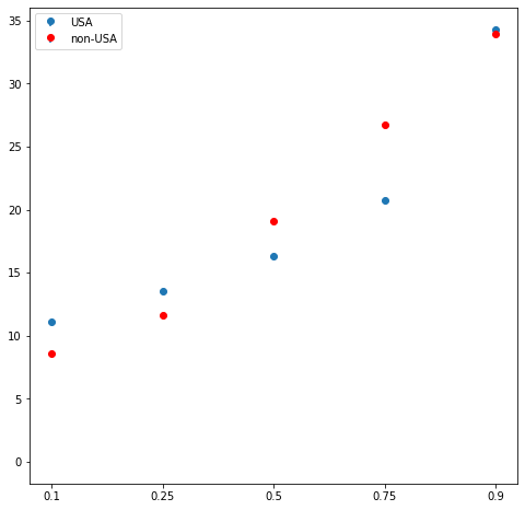 ax.stem(stems,leafs2,markerfmt='ro',label='non-USA')