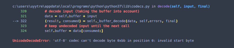 | [오류 해결] UnicodeDecodeError : 'utf-8' codec can't decode byte 0xbc in position 0: invalid start byte (4) | 2020.08.13 |