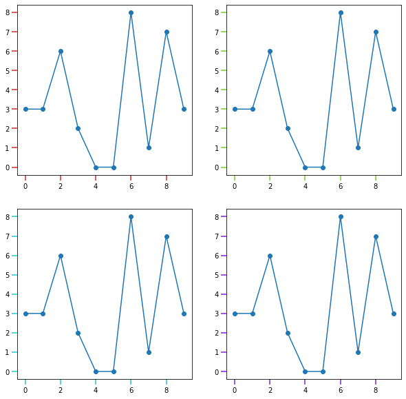 direction이 'in'인 경우에 눈금은 안쪽에 배치되고 'out'은 바깥쪽에 배치되며 'inout'인 경우 눈금이 중앙에 걸쳐 있는 것을 알 수 있습니다.