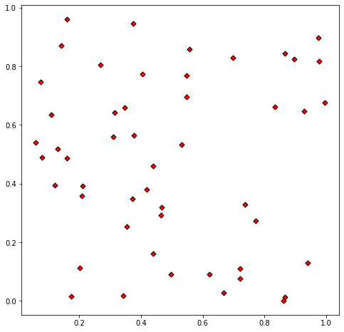 마커의 색상은 color, 마커 스타일은 marker, 마커 크기는 s, 그리고 마커 테두리 색상은 edgecolor로 설정할 수 있습니다. Matplotlib에서는 마커 스타일을 미리 정의해놓았습니다. 여기에 가셔서 확인해보세요. 아래 코드를 실행해보세요.