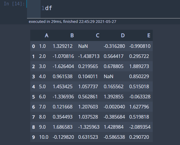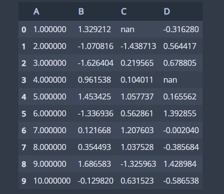 df = pd.DataFrame({'A': np.linspace(1, 10, 10)})