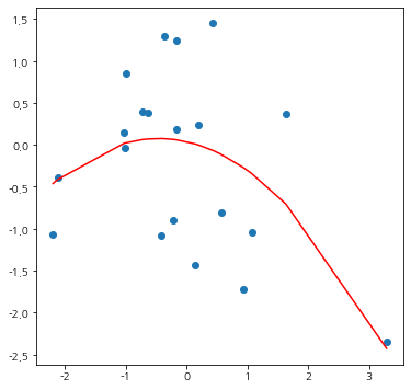 코드를 실행하면 회귀 직선이 잘 그려진 것을 확인할 수 있습니다. 꽁냥이는 재미 삼아 2차 곡선도 적합해보았습니다.