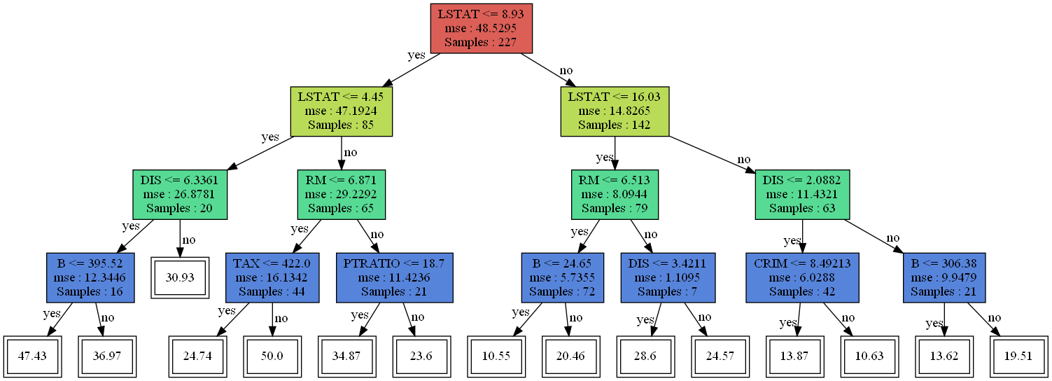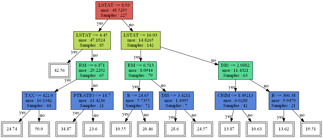 이번엔 Boston 집값 데이터에 대해서 CCP를 적용해보자. 먼저 기본적인 의사결정나무를 만들어준다.