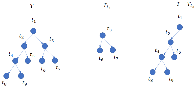 CCP 방법을 알아보기 전에 사전에 정의해야 할 것이 있다. 먼저 노드 $t$와 $T_t$ 그리고 $T - T_t$에 대한 정의를 아래 그림으로 나타내었다.