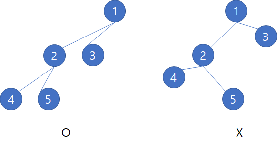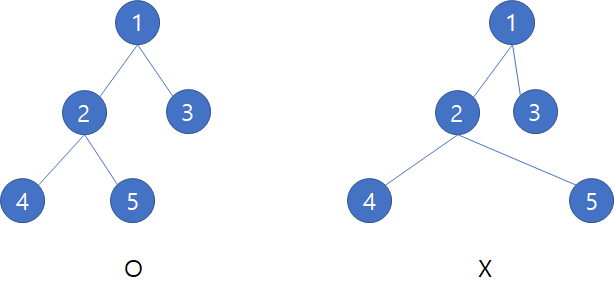 한 노드의 왼쪽 자식 노드는 부모 노드 왼쪽에 오른쪽 자식 노드는 부모 노드 오른쪽에 있어야 한다.