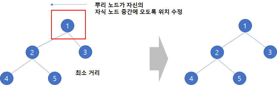2~3 단계를 모든 왼쪽 서브 트리와 오른쪽 서브 트리가 최소 거리가 될 때까지 반복합니다. 이때 반복 횟수는 주어진 나무의 깊이로 설정하였습니다.