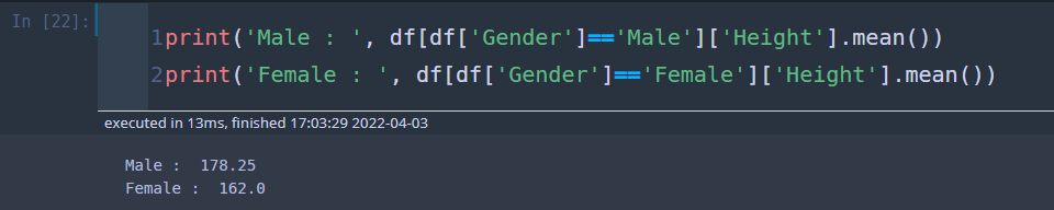 print('Male : ', df[df['Gender']=='Male']['Height'].mean())
