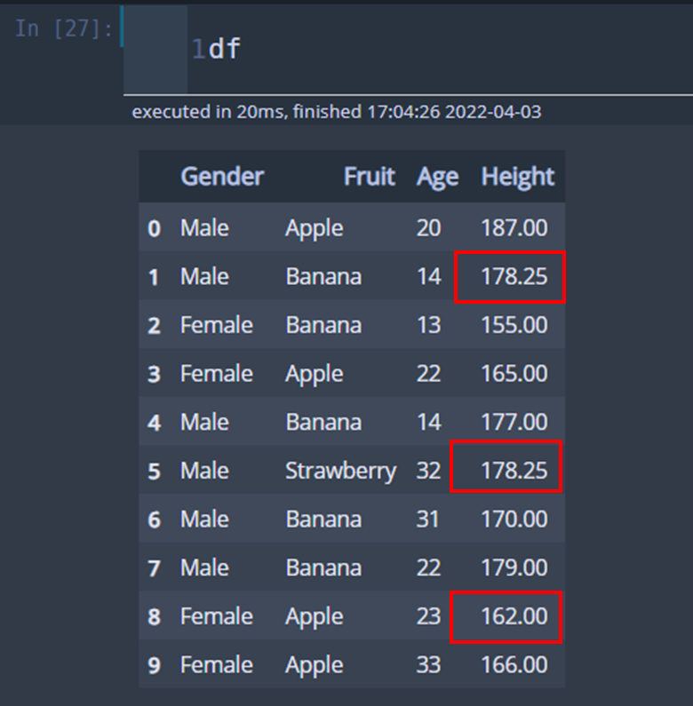 'Height' : [187,np.nan,155,165,177,np.nan,170,179,np.nan, 166]