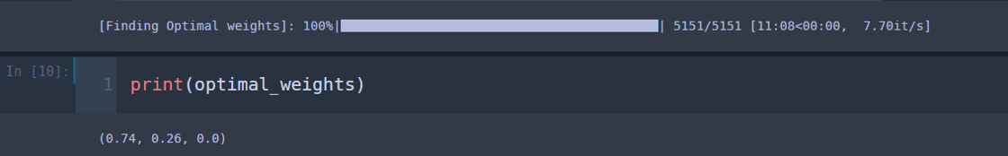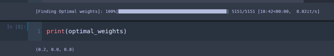 for w in tqdm(weights,position=0,desc = '[Finding Optimal weights]'):