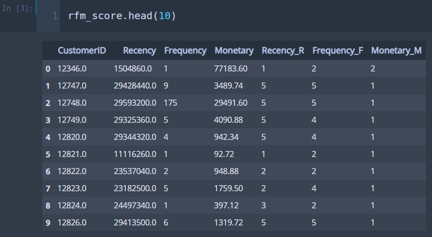 rfm_score = rfm_score[['CustomerID', 'Monetary', 'Recency_R','Frequency_F','Monetary_M']]