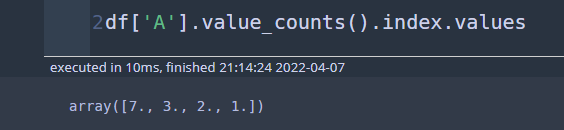 첫 번째 방법은 value_counts가 nan을 제외한 개별 값들의 출현 빈도를 나타내 준다는 것과 개별 값들이 인덱스(index)에 있다는 것을 이용한 것입니다.