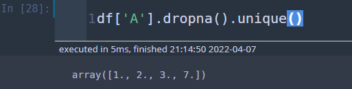 이번엔 nan값을 포함하지 않는 unique 한 값을 구하려면 어떻게 해야 할까요? 아래와 같이 2가지 방법이 있습니다.