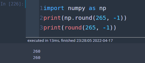 반올림을 수행하는 함수는 원래 내장 함수나 Numpy에서 제공하는 함수를 쓰려고 했으나 아래와 같은 문제점을 발견했다.