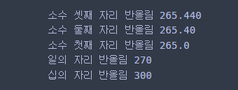 예를 들어 265를 1의 자리에서 반올림한다면 270이 나와야 한다. 하지만 결과는?