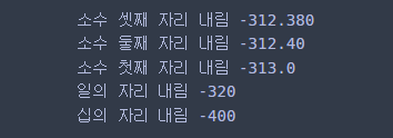 print(f'{text[i]} 내림 {do_floor(x, digit)}')