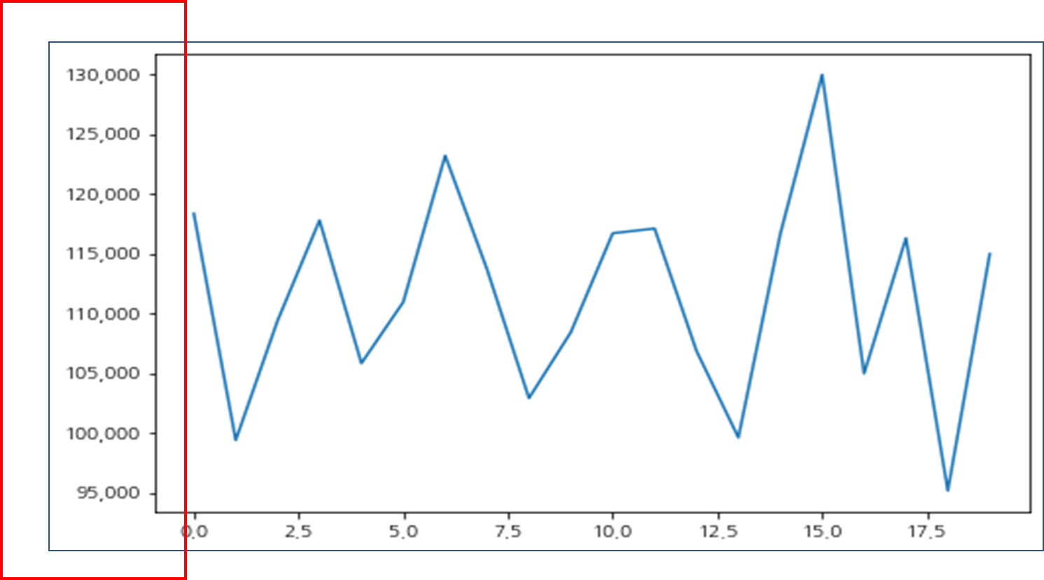 먼저 y축 눈금 숫자에 천 단위로 콤마를 찍어보겠습니다. 방법은 어렵지 않습니다.