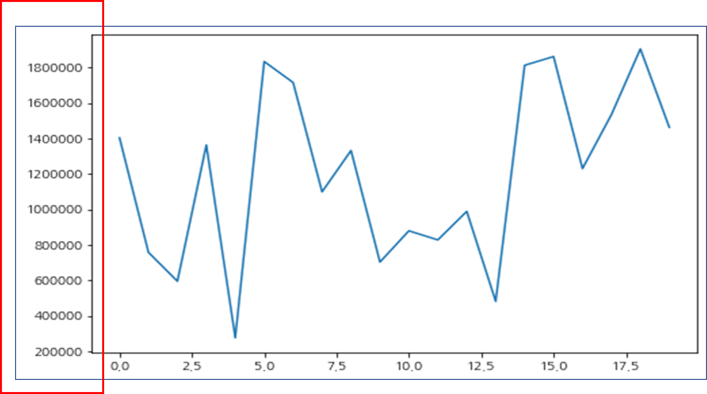 y값이 엄청 큰 값을 포함하는 경우 y축이 아래와 같이 지수 표현 형식(Scientific Notation)으로 표현되는 경우가 있습니다. 이때 앞서 배운 것을 활용하면 그 형식을 바꿀 수 있습니다.