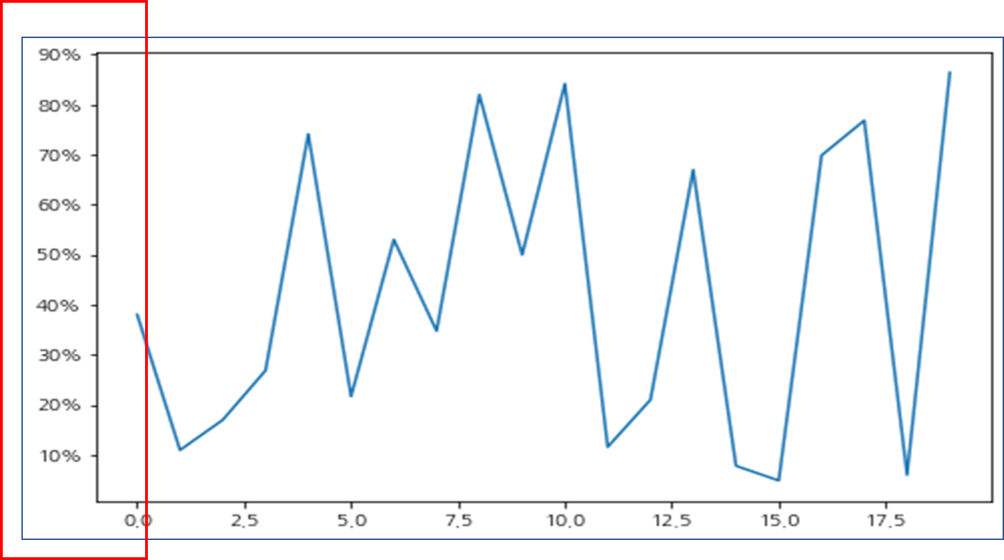 이번엔 y축 눈금을 백분율(%) 형식으로 표시하는 법에 대해서 알아보겠습니다. 기존 코드와 거의 동일하고 format 함수를 백분율(%)로 표시되도록 변경했습니다.