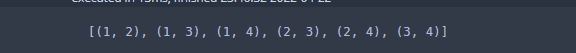 만약 집합 1, 2, 3, 4에서 2개를 뽑는 조합은 다음과 같이 구할 수 있다. 마찬가지로 결과는 바로 나오지 않기 때문에 list나 tuple과 같이 써서 결과를 볼 수 있다.
