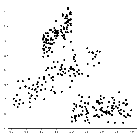 init_centers = np.array([[1.5,4], [3.5,0], [1.5, 11]]) # 초기 중심값