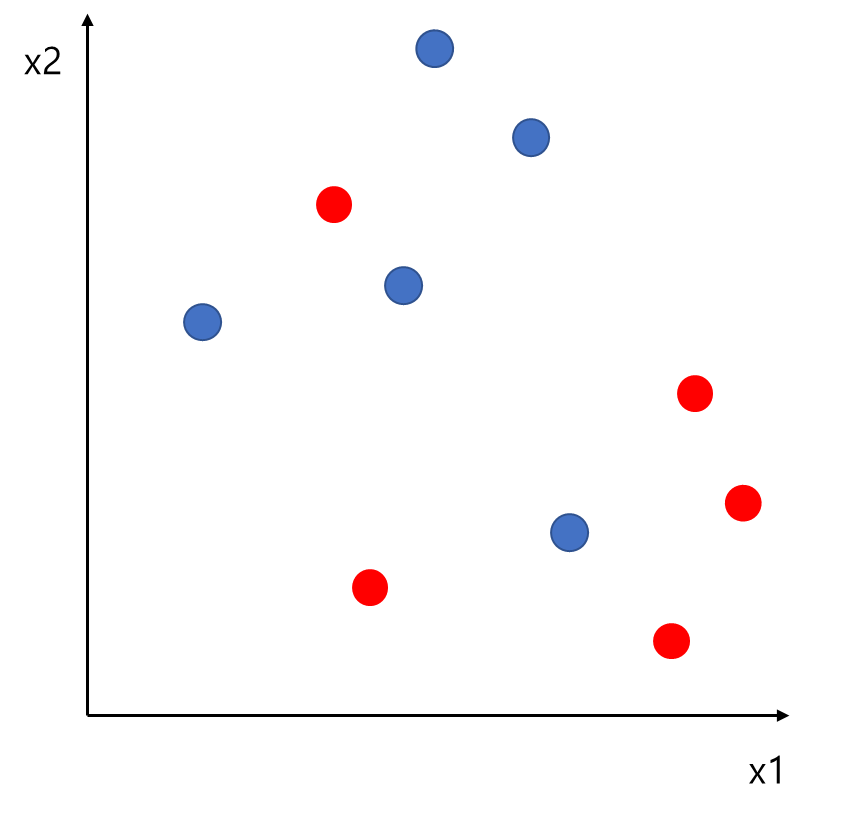 앞에서 Hard-Margin Linear SVM을 살펴보았다. 이는 클래스들이 선형 함수로 완벽하게 분리되어있는 Linear Separable 한 경우에만 쓸 수 있다. 하지만 현실세계에서 Linear Separable한 경우는 거의 없다. 즉, 선형 함수에 의해 완벽하게 분리되는 경우가 없다는 것이다. 아래 그림처럼 말이다.