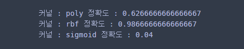 print('커널 :', kernel, '정확도 :', np.mean(y == pred))