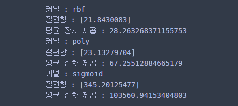 회귀에서도 rbf 커널인 경우의 성능이 가장 좋았다.