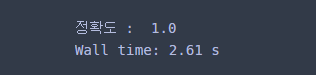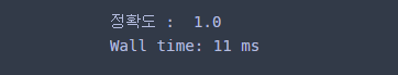 정확도는 앞의 결과와 동일했다. 하지만 속도가 200배 가까이 차이 났다. ㄷㄷ;;