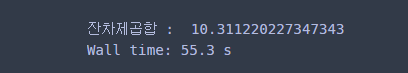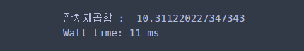 잔차 제곱합은 10.31로 나왔다. 하지만 시간이 1분 가까이 걸렸다.