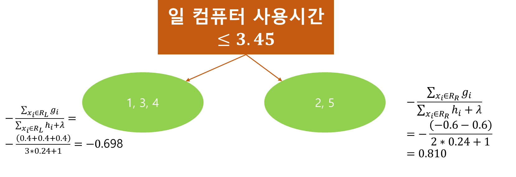 $$w_j^* = -\frac{\sum_{x_i \in R_j}g_i}{\sum_{x_i \in R_j}h_i + \lambda}\tag{5}$$