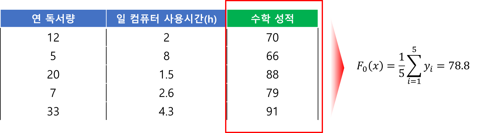 $$F_0(x) = \frac{1}{5}\sum_{i=1}^5y_i=78.8$$