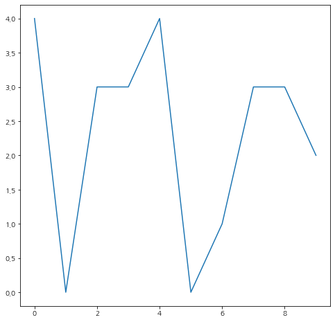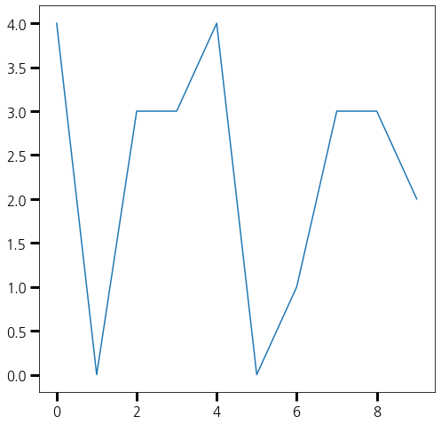 ax.plot(range(10), [random.randint(0, 5) for _ in range(10)])