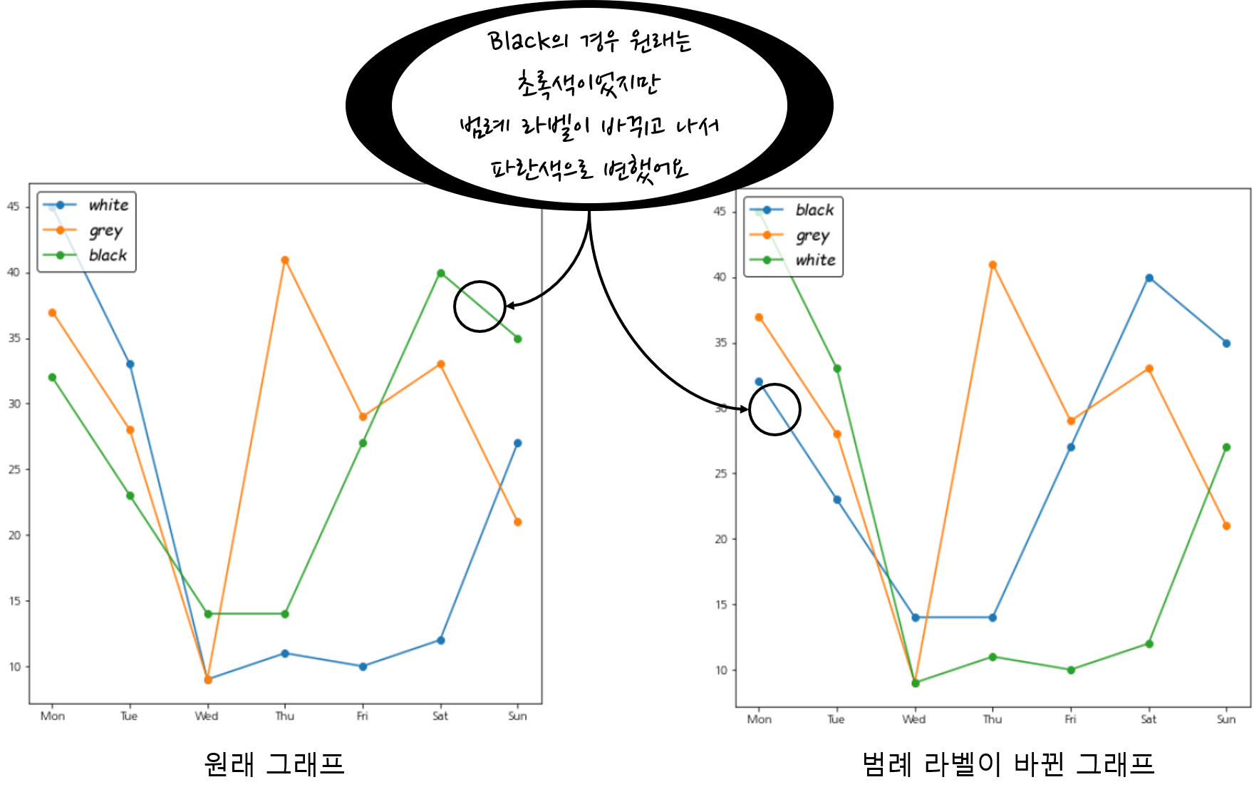 원래의 선 그래프 색상은 유지하면서 범례 순서만 바뀐 것을 알 수 있어요.
