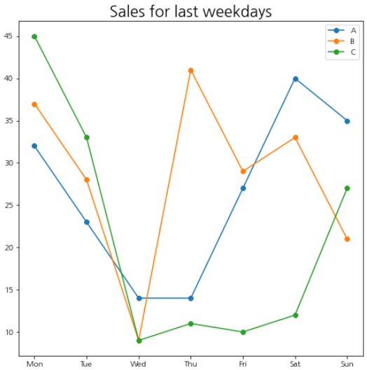 ax.plot(days,a_visits,marker='o',label='A') ## 선그래프 생성