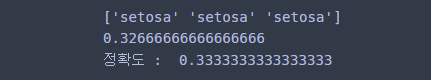 print('정확도 : ', clf.score(X,y)) ## 테스트 성능 평가 점수(Accuracy)
