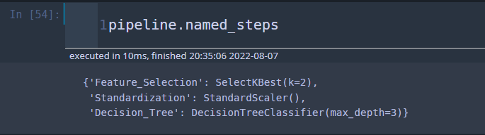 Pipeline에서는 naed_steps를 이용하여 각 작업 과정을 딕셔너리로 접근할 수 있다.