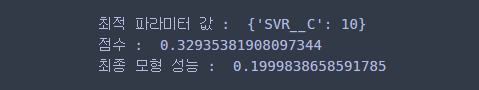 parameters = {'SVR__C':C_list} ## "Pipeline의 작업명 +__+ 모형 클래스의 파라미터"