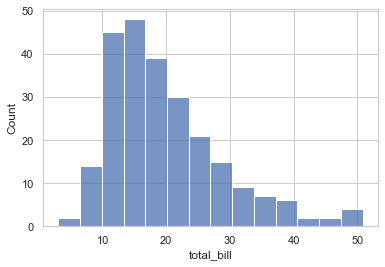 ax = sns.histplot(data=tip_df, x='total_bill',