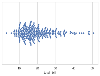 # sns.swarmplot(y=tip_df['total_bill']) ## 수직 Swarm Plot