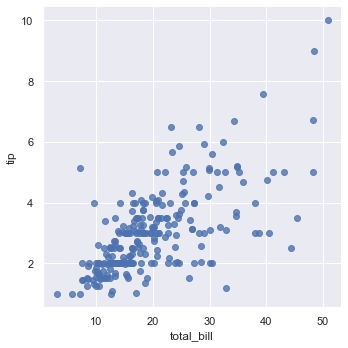 lmplot은 fit_reg를 통하여 회귀 직선을 포함시키지 않을 수도 있어요.