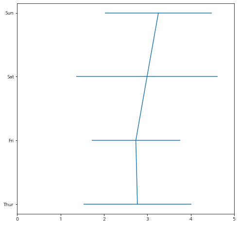 plt.errorbar(y, x, xerr=std) ## 수평 에러 바