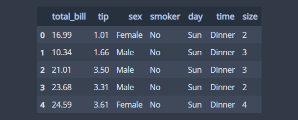 먼저 시각화에 사용될 데이터를 다운 받을거예요. 꽁냥이는 Seaborn에서 제공하는 '팁' 데이터를 이용할 거예요.