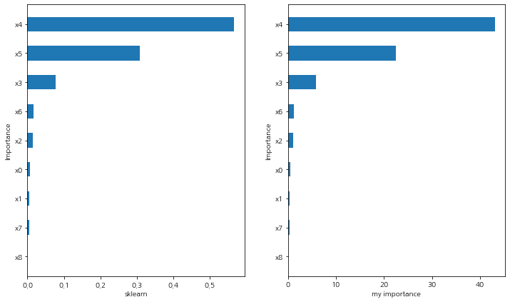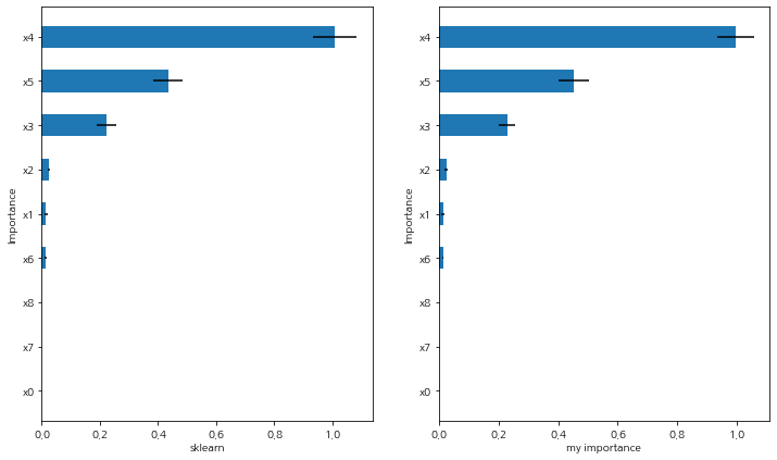 이번엔 sklearn에서 제공하는 Permutation Importance 결과와 일치하는지 확인해보았다.
