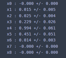 print(f'x{i} :', f'{res[0]:.3f}', '+/-', f'{res[1]:.3f}')