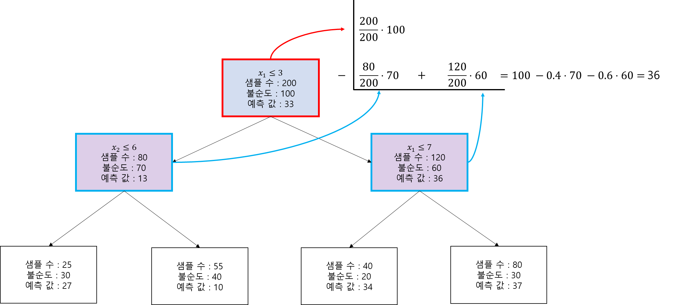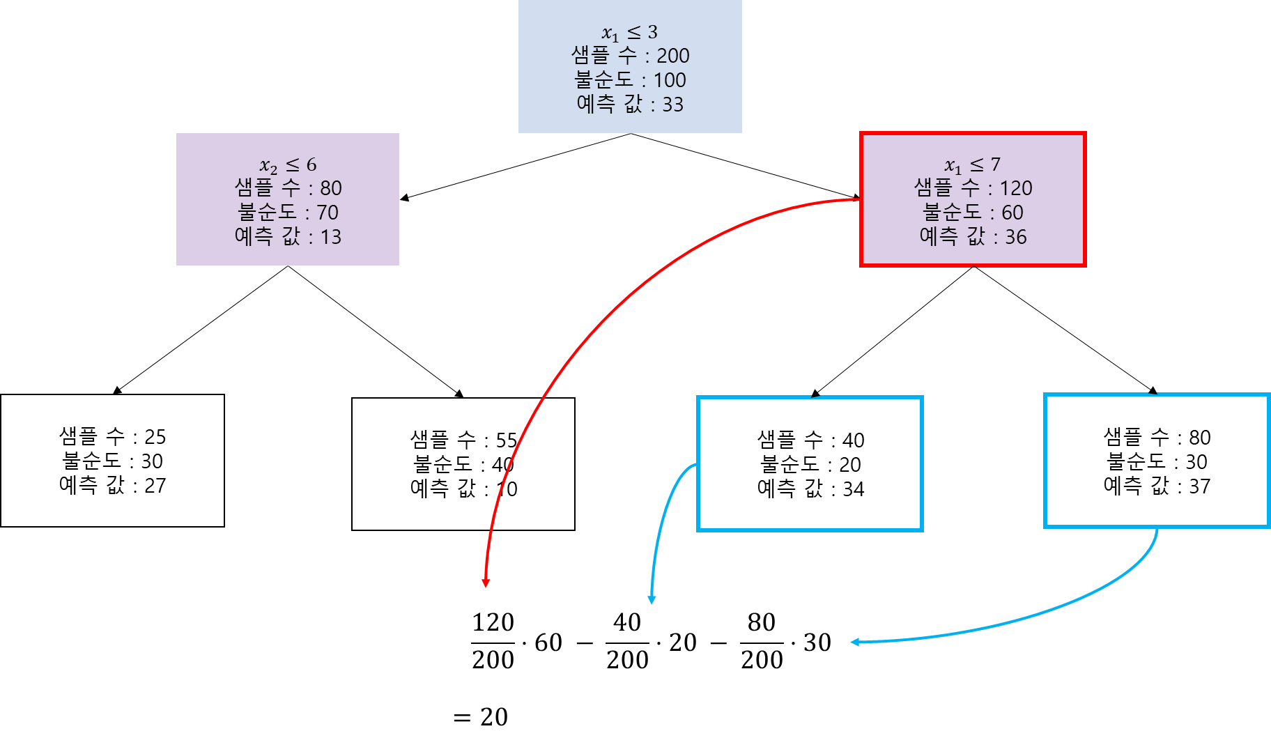 → $t_m$의 $j$번째 변수의 중요도 $I_{m, j}$를 다음과 같이 계산한다.