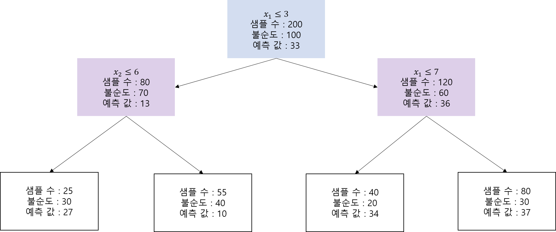 먼저 데이터 $(x_i, y_i), i=1, \ldots, n$가 있다고 하자. $x_i=(x_{i1}, \ldots , x_{ip})^t$는 $p$차원 설명 변수 벡터이고 반응 변수 $y_i$는 실수 또는 범주를 나타내는 숫자라고 하자.