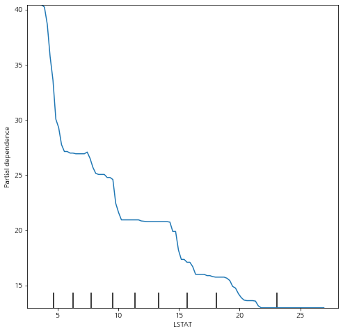 PartialDependenceDisplay.from_estimator(model, ## 학습 모델