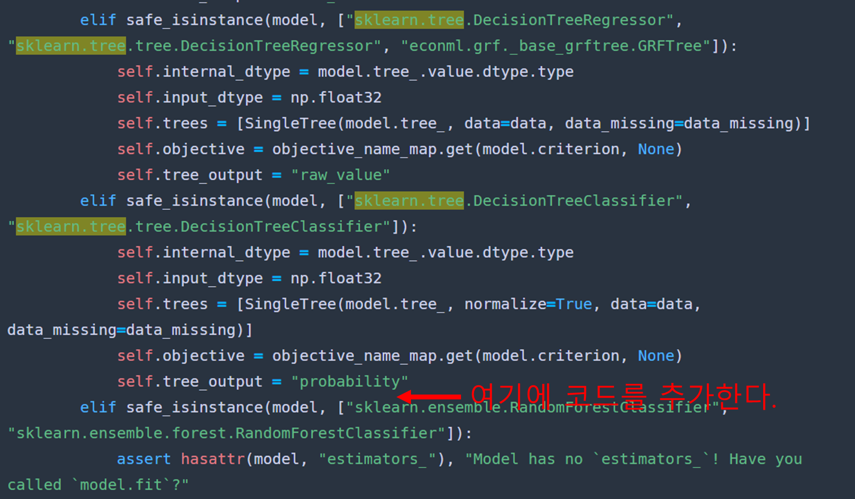 위에서 찾은 경로로 들어가서 shap 폴더를 찾은 뒤 explainer 폴더에서 _tree.py 파일을 찾고 열어준다.