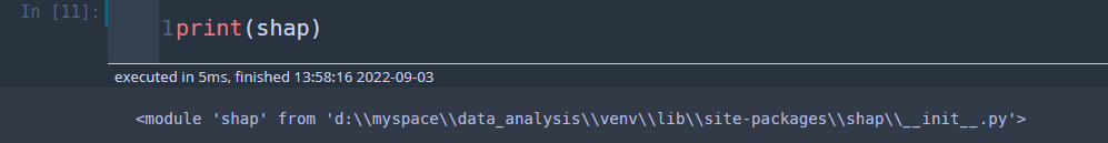 다음과 같이 print를 사용해서 shap 모듈이 설치된 경로를 확인한다.