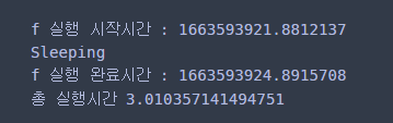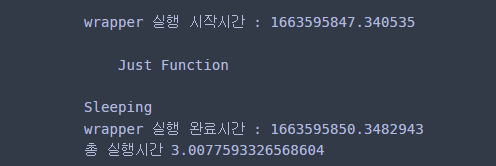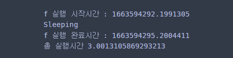 먼저 꾸밀 함수를 정의해보자. 아래 코드에서 정의된 함수는 'Sleeping'이라는 문자열을 출력하고 3초간 잠을 자는(아무것도 안 하는) 함수이다.